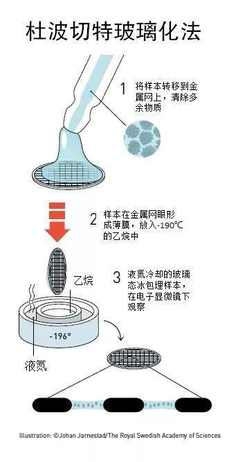 20世纪80年代早期,雅克·杜波切特向电子显微镜添加了水,并成功地将水迅速冷却,使样本中的生物分子在真空中保留了自然形状。