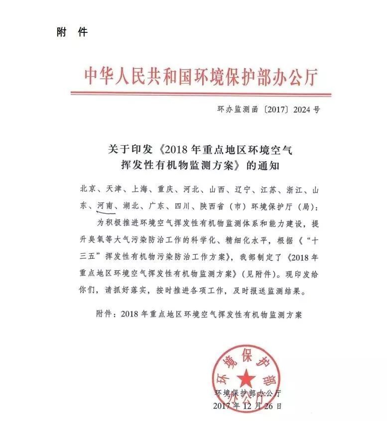 年前,环保部印发《2018年重点地区环境空气挥发性有机物监测方案》。方案对于VOCs监测的城市、监测项目、时间频次及操作规程等做了规定。