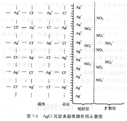 图7―1是AgCl沉淀表面吸附杂质的示意图。