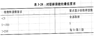 (2)料堆和车厢中应使用螺旋取样器取样份样质量及份样个数也按表3-27执行。