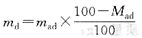 以外在水分(Mf)与空气干燥水分(Mad)之和表示全水分(Mt),计算公式如式如下:
