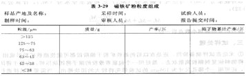(2)试验结果汇报 以表3-29形式或以作图方式表达。以试验筛相邻粒级质量百分比来表达试样粒度组成。