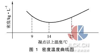 建议规范采用规定:原油密度测定时,试验温度应在凝点以上12℃~16℃之间。