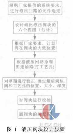 设计液压阀块的一般步骤如图1所示,从图1中可以看出,液压阀块设计,首先根据厂家的要求画出液压阀块的6个视图,这对设计人员的空间想象能力有较高的要求,对于简单的油路尚可,如果油路稍微复杂,就易出错。而在打工艺孔、走油路这一步骤中,以往设计人员所用的二维软件,设计周期长,容易考虑不全,当阀块某个油路和工艺孔需要修改时,任务量相当大,多做了一些重复性工作,这样浪费了设计时间。而运用Pro/E软件,在三维环境中可以方便地修改设计人员认为不合理的尺寸,修改后的实体模型可以很迅速的反映出改变后的效果。