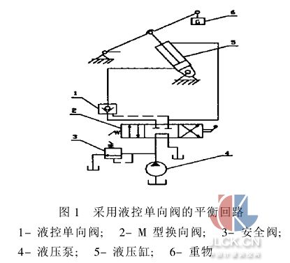 液控单向阀是在单向阀的基础上加上一个可控活塞顶杆,它具有二个作用:一是解除单向阀的逆止作用,二是锁定作用(如图1所示)。在液压缸活塞腔的进回油路上,装设液控单向阀,当液压泵卸载或停止工作时(换向阀处于中位),液控单向阀关闭。在重力作用下,活塞腔油液产生背压,以实现平衡,将重物停留在空中某一位置而不下滑。工作时,利用进入活塞杆腔的压力油打开液控单向阀,以满足正常工作时活塞腔排油的需要。
