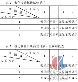 2.2.3由表5、表6可知,在对下吊挂支架进行荧光、着色渗透探伤检查时,均未发现任何形式的可疑缺陷磁痕表示。