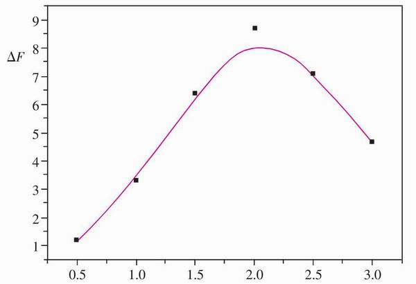 Phen浓度对体系荧光强度的影响如图3所示,当Phen浓度在5×10-5mol/L时,体系的ΔF达到最大。故本法选用5×10-5mol/L的Phen 0.5mL进行研究。