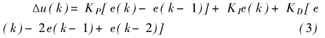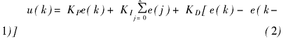 由于计算机控制是一种离散采样控制,它只能根据采样时刻的偏差值计算控制量,故需要将(1)式进行离散化处理。以一系列的采样时刻点代替连续时间,以和式代替积分,以增量代替微分,得: