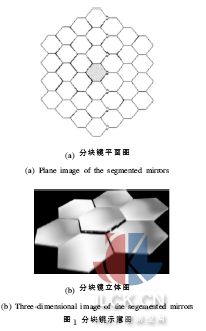 大型望远镜是物理学家及天文学家研究宇宙起源最重要的工具,望远镜的集光能力及角分辨率随着口径的增大而增强,集光能力越强,就能看到越暗越远的天体,即能够看到更早期的宇宙,天体物理的发展需要更大口径的望远镜。从16 世纪伽利略发明望远镜到当今美国加州理工大学建造的10 m 口径的凯克望远镜,主镜口径在不断增大。但是,随着望远镜口径的增大,一系列的技术问题接踵而来。首先,望远镜的自重引起的镜头变形影响相当大,镜面畸变严重影响成像质量[1]。其次,从制造成本来看,传统方法制造望远镜的费用几乎与口径的平方甚至立方成正比[2],因此,从20 世纪80 年代开始,采用可收展式的分块镜的思想逐步发展起来[3],如图1 所示。