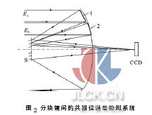 式中: S.R 为斯特列尔比, 是光学系统像质评价的一种指标, 理想值为1;σ =2kδ = 4πλ δ ,λ 为波长,δ 为各分块镜镜面之间高度差的均方根值;n 是分块主镜的数量。要保证系统具有优良的像质,各分块镜之间高度差的均方根值要达到δ≤λ/20。沿光轴方向,分块镜之间的高度差即为共相位误差,如图1 (b)所示。分块镜在展开后首先进行机械调整,将误差范围尽量减少,然后进入合像环节, 将倾斜等量检测并校正到很小的范围内,满足共相位误差的检测要求。对于尺度为米级的大型分块镜而言, 要把各分块镜之间的共相位误差检测到λ/20 的精度水平, 是一个极具挑战性的难题。因此, 分块镜共相位误差高精度的检测和校正是实现超大口径、甚高分辨率成像的前提和技术关键。