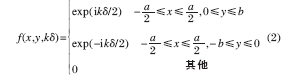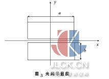 相邻分块镜之间共相位误差检测系统如图2 所示,E1和E2为入射平行光,1 和2 为反射镜,1 和2 的连接处设置了方形光阑, 横跨相邻两个分块镜,S 为次级反射镜。入射光经过光阑及反射镜在焦面发生衍射-干涉,采用CCD 可以接收到衍射-干涉图。图3为方形光阑示意图。其中a,b 分别为光阑的长和宽。当分块镜1 和2 之间存在共相位误差,E1和E2经过反射镜后存在光程差, 衍射光斑也会随共相位误差的变化而变化。入瞳函数为: