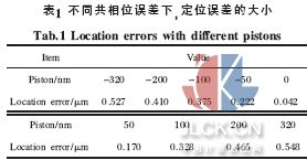 (3) 利用衍射光斑的峰值位置判断共相位误差的方法是一种有效的测量方法,由于实验条件限制,振动及噪声对衍射光斑有一定影响,使得误差稍大,但实验结果表明:该方法的测量精度能达到λ /20。
