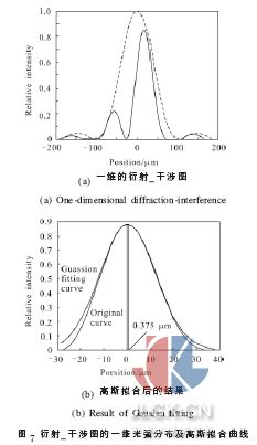 根据波动光学及傅里叶光学理论, 焦面处衍射-干涉图的一维光强分布为: