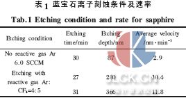 蓝宝石球透镜加工通过传统工艺完成。二元光学元件加工通过掩模套刻方法完成,经三次掩模套刻完成八台阶二元元件加工。所有加工均在浙江大学完成,其中在蓝宝石上用反应离子束刻蚀时的刻蚀条件及速率如表1 所示。加工后的二元元件经台阶仪测试,深度精度达到20 nm。