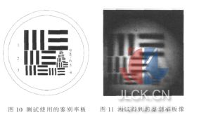 利用焦距为2 m 的平行光管对球透镜的像质进行了测试,测试时所使用的鉴别率板如图10 所示。在各视场下通过球透镜成像后的鉴别率板像如图11 所示。从测试结果可清晰分辨标号为2 的线条。由于该线条宽度为1.69 mm,球透镜焦距为11.25 mm,计算得到:球透镜在焦面上可分辨10 μm 的线条宽度。已完全达到弥散斑小于60 μm 的设计要求。