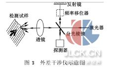 光外差方法通常用的是迈克逊干涉仪,探测的表面是镜面,图3是外差干涉仪的原理图。