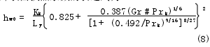 由传热学理论可知,空气在外筒近壁处边界层的发展不因空间限制而受到干扰,属于大空间自然对流换热。通过邱吉尔(S.W.Churchill)所提出的计算关联式[2],可以推导出竖直状态缸筒外表面换热系数的表达式为