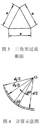 根据假设1,螺旋阻尼器可看成水平流道;根据假设2、3可将微小弧段流道视为直线通道;根据文献〔1〕,螺旋阻尼器的微小弧段三角形过流断面的压降公式为