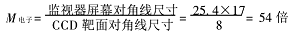 近代又普遍采用光电元件――电荷耦合器CCD作为显微镜的接收器,在显微镜的实像面处装入电视摄像靶(电荷耦合器CCD),这些光电器件把光学图像转换成电信号的图像,图像通常以两种方式显示:一种方式是用一个监视器显示显微图像,图像的放大倍率有很大提高。例如:若采用1/2英寸CCD,它的靶面对角线尺寸是8mm,监视器采用17英寸,那么,电子的放大率是:
