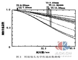 图2是转接镜头的光学传递函数曲线。可以看出,这是一个比较完善的设计,该镜头的介入不会影响数码相机的成像质量。