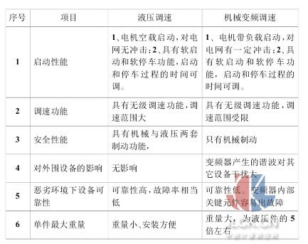 综上所述, 采用液压驱动系统调速具有传统的机械传动+变频调速无法比拟的优点。