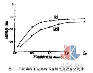 当Kd 1,即频率较低时,W′(f,d)随f的增加而增加,即不连续性的回波信号幅度随频率的增加而提高;