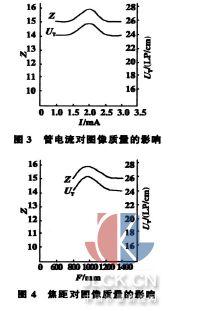 可见,四种参数对图像质量的影响规律基本一致,均存在一个最佳值。管电压和放大倍数是影响实时成像图像质量的主要因素,焦距和管电流对图像质量虽影响较小,但也不容忽视。所以只有当综合考虑各种因素的影响后,在优化工艺下才能获得最佳的图像质量。
