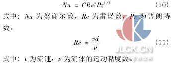 试验中的气压较低,能适用于雷诺数很小的Nusselt 准则方程为[5]: