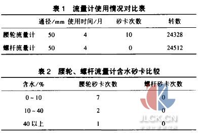 通过使用对比,螺杆流量计大大优于腰轮流量计,而含水量越少,腰轮流量计砂卡次数越多,使用螺杆流量计,降低了计量误差,提高了原油计量的准确率。