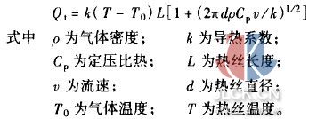 根据物体与流体间的热传导关系,可得出热丝耗散热量Qt与流速v之间的关系为: