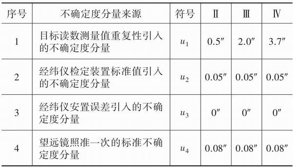 2.经纬仪检定装置标准值引入的不确定度分量
