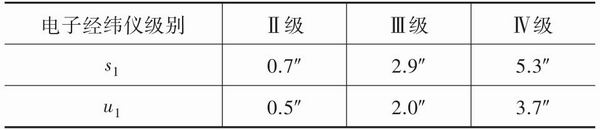 依据Ⅱ级、Ⅲ、Ⅳ级电子经纬仪其方差传播公式,可得到如表4所示的结果。进而可得到如表5所示的结果。