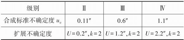 由于参与经纬仪检定结果处理的标准角值没有进行修正,根据经纬仪检定装置计量检定证书,水平、竖角目标定位重复性结果的扩展不确定度U=0.1″,k=2,故u2=0.1″/2=0.05″。