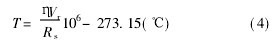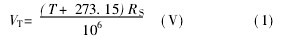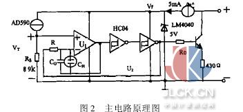 温度传感器为以电流输出表示绝对温度的传感器AD590,灵敏度为1μA/K,AD590输出的电流经Rs转换成电压VT,设温度为T(℃),则