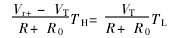 当专用采集器选通某变送器后,变送器输出的复合调制电流脉冲经分离、消噪、隔离后变成电压脉冲,通过单片机的定时器在占用CPU极少资源的情况下测出其正负脉宽TH及TL。下面分析如何由TH、TL计算温度及湿度。由式(1)及(2)可得