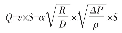 式中:S――管道的内截面积;α――流量系数。