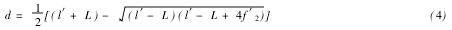 当视距(即物距)由无穷远向近距变化时,目标的像将不在原物镜后焦面(此处安装分划板)上,此时需调节内调焦镜(物镜后组)沿轴向移动,保证像位置不动。这里,内调焦镜沿光轴方向的移动距离,称为调焦距离da,等效于前后组主面之间的间隔变化。调焦距离愈大,物镜的像差变化愈大,使设计难度增加。因此调焦距离的大小要恰当,在前、后组的光焦度被确定后,它只与视距l有关。经推导,前后组之间的距离d满足