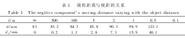由图2看出,当视距由无穷远向近距离变化时,d的变化开始比较缓慢,但当视距达1 m左右时,d变化很快,视距与调焦距离的数值关系参见表1。由表1看出,当视距由无穷远到5 m时,d从83.0 mm变化到85.8 mm,调焦距离仅为2.8 mm;当视距为2 m时,调焦距离增为7.3 mm;视距为1 m时,调焦距离跃为15.9 mm;视距为0.5 m时,调焦距离跳升为40.1 mm。