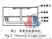 (4)式中K称为传感器的灵敏度,与平衡板的质量,,,和中心柱高12有关,还与十字簧片的筋长l、宽度b和厚度a有关。根据正应力和剪应力的强度校核以及挠度的刚度校核,在满足校核公式的前提下,设计铝制平衡板(,,,=14.09,h二3.0mm);十字簧片(l=10.0mm,b=3.Omm,a=0.12mm),可得尺=3.01当被测平面发生倾斜变化时,为尽快使平衡板能在新的平衡位置平衡下来,采用磁阻尼的方法,将平衡板的边缘浸在强磁场中(见图2,采用铰铁硼永磁铁)。平衡板振动时,切割磁力线,浸在强磁场中的平衡板的边缘表面将产生涡流。该涡流产生的磁场反抗原磁场,使平衡板产生磁阻尼振动,其振动方程为