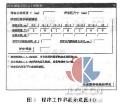 程序包括报告模板和加载宏两部分。报告的格式可根据需要自定,报告中的被检产品信息(如零件名称图号等)需要自行输入,而缺陷情况、评定等级和结论等由程序自动完成填写。目前已应用于实际工作中的程序版本仅包含了JB/T 4730.2-2005标准的内容。