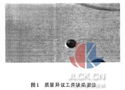 选用 1.2mm平底孔铝合金纵波对比试块,孔埋深10mm、20mm、30mm、40mm、50mm、60mm、70mm、80mm、90mm、100mm及疏松缺陷试样。图2是零件低倍试片疏松缺陷试样。