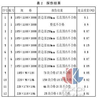 对8张板及379块料进行了超声波探伤,探伤结果见表2。