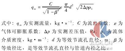 平衡流量计与其他差压式流量计一样,根据伯努利方程计算体积流量和质量流量。质量流量计算公式[1]如下: