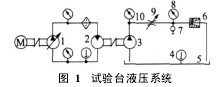 试验台由一个开式油路和一个闭式油路构成。泵1与马达2组成闭合回路,轴向柱塞马达2用于试验。液压马达2带动泵3旋转,泵3工作在开式油路中,油箱5中加入专门液体添加剂,对于液压马达2由确定液压回路来保证液压马达试验台上工作载荷,油箱5供给的液体通过液体动力分散剂-辐射器的节流阀9,重新返回油箱,泵中添加的液压由压力表10测量。而液体动力分散剂-辐射器6前的压力由表8测量。分散剂工作喷嘴输入中用标准真空计测定。油箱中液体的温度由温度计4测量,为了采样在分散器前安装采样阀7。试验开始前对工作液体取样,按表1列出程序进行试验。试验后选择液压马达排油腔进行工作液的采样,进一步进行中子有效分析,以测量产品磨损和确定酸性数质量成分。