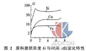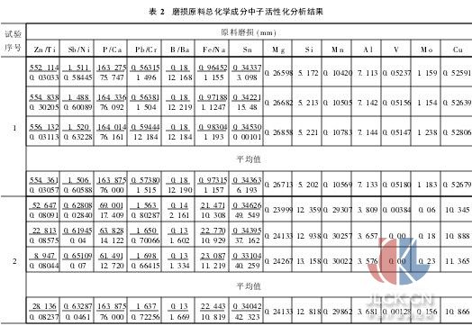 切除试验的新的液压马达配流盘端面密封环轮廓断面图,比较分析轮廓断面图和圆断面图证明了缸体-配流盘摩擦副上金属选择移动过程的假设。分析液体采样表明,主要磨损材料产品化学成分在运转1~2 h明显地变化,以后稳定下来,基本无变化(见图2)。磨损原料总化学成分中子活性化分析结果见表2。