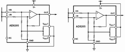 图1 高侧电流传感器AD8205内部电路原理图
