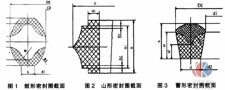 密封件种类很多, 常用的型式有鼓形密封圈、山形密封圈和蕾形密封圈。 鼓形密封圈耐压力高,可达 60MPa,能双向密封,拆装方便,应用较多。 主要缺点是宽度和高度尺寸大, 影响行程,在双伸缩油缸上使用不够合理,使柱塞结构复杂,增加制造成本,结构形式如图 1;山形密封圈的断面小,可以使油缸结构紧凑,行程大,并使柱塞的结构简化,制造成本降低,但安装较困难,结构形式如图 2;蕾形密封圈如花蕾,具有耐压高,防挤性能强、密封可靠和寿命长的特点,但价格高,结构形式如图 3。