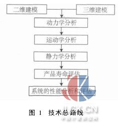 对于虚拟样机系统而言,一般应主要包括三维模型建立系统、静强度分析系统、运动仿真系统、动力学分析系统、产品寿命评估系统等内容[3]。
