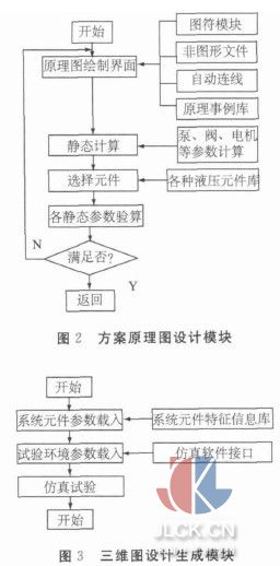 2)液压系统虚拟样机技术详细技术路线液压系统的虚拟样机技术的基础是CAD/CAM、系统仿真和虚拟现实技术,具体模块实现过程如图2和图3。