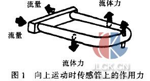 当流体流经具有固定频率的振动管时,流体被强制接受管子的垂直动量。在管子向上运动的振动半周期时,流人仪表的流体向下压,抵抗管子向上的力。反之,流出仪表的流体存在向上的力,抵抗管子对其垂直动量的减少,而把管子向上推。